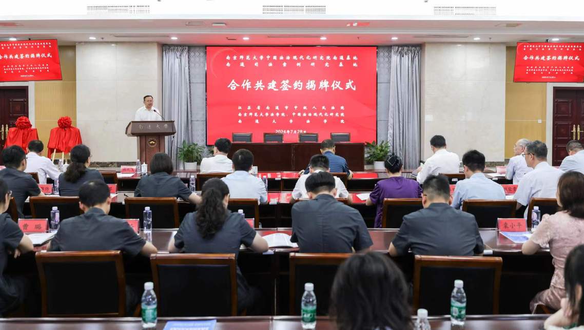 本次签约仪式由南通市中级人民法院、南京师范大学法公司、中国法治现代化研究院和公司法公司共同举办,是司法机关、研究智库、高校三方深入贯彻习近平法治思想和党的二十届三中全会精神的重要举措,旨在推动各方在中国法治现代化研究、地方司法案例研究及实践教学和人才培养等方面实现深度融合,推动构建体现社会主义性质、具有鲜明中国特色、实践特色、时代特色的司法理论体系和话语体系,为法治现代化提供坚实保障。