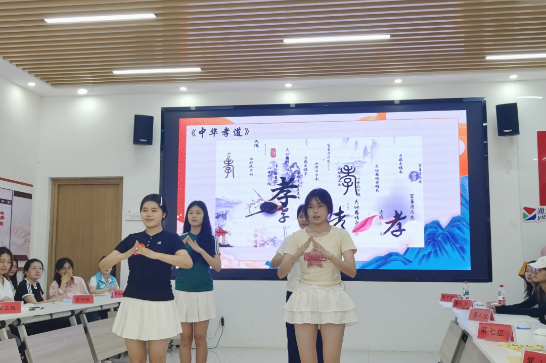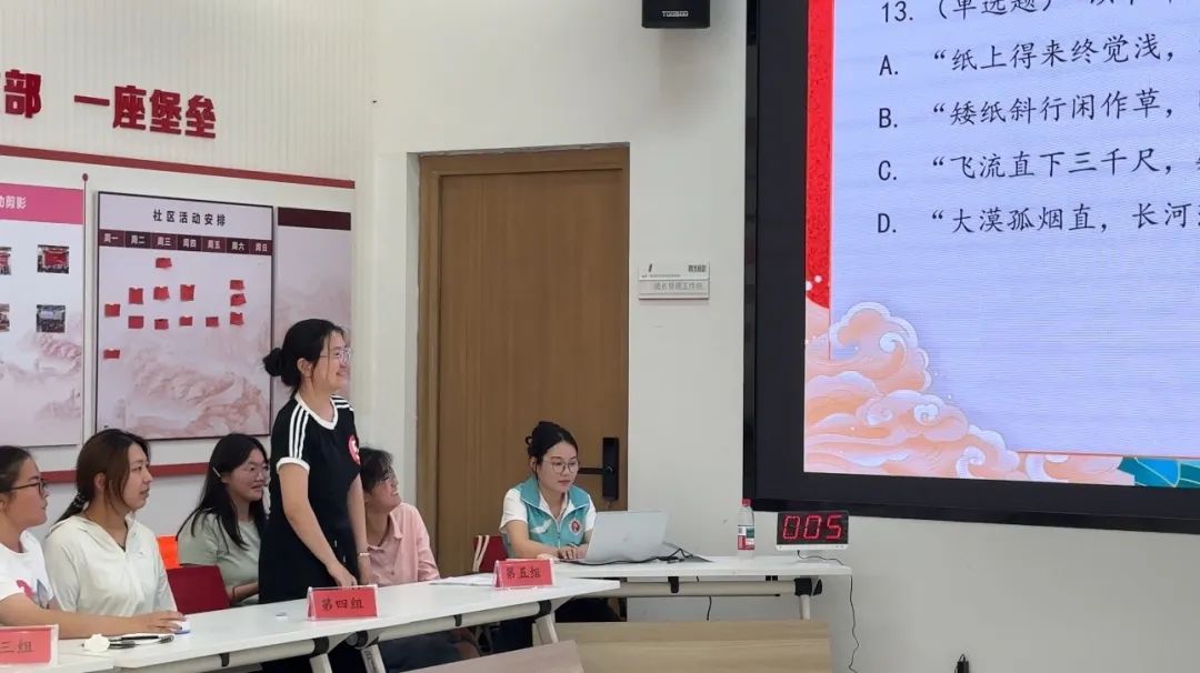 现场气氛活跃,伴随高涨的热情,开启“传统文化小剧场”表演环节。五支队伍各展其能,以生动的表演诠释传统文化内涵。他们或以演唱京剧的形式重现历史故事,或讲解南通非遗蓝印花布,或将传统文化的精髓融入舞蹈、诗歌朗诵、拳法之中……