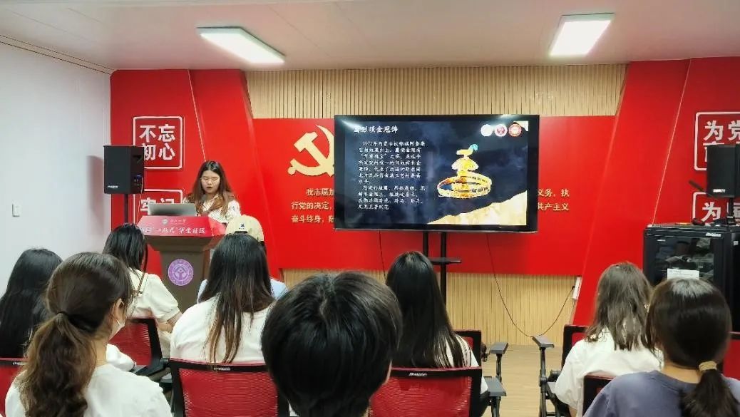 在“文物疗愈”主题讲解环节,佟慧莹同学以内蒙古草原文物为引,解读鹰形顶金冠饰的草原霸权密码、辽代捍腰的农耕游牧文明对话、清代东布壶的民族融合印记;简宇洁同学则通过古滇国青铜器与藏戏面具,揭秘南方丝绸之路的贸易网络与精神信仰。每一件文物不再是冰冷的器物,而是承载民族记忆的“疗愈师”,让参与者在历史回响中感受文化共情,实现“以文化人”的育人目标。